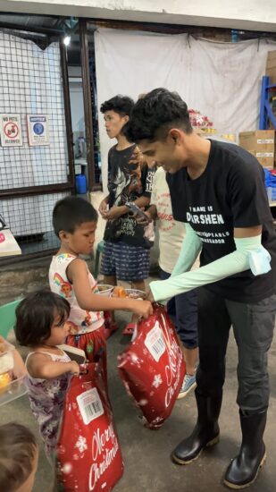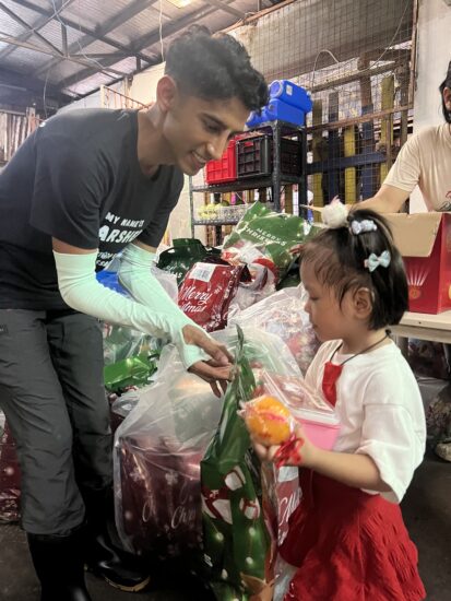 Darshen also joined our Hunger Relief Program, helping feed hundreds of families, and personally handed out gifts to children.
