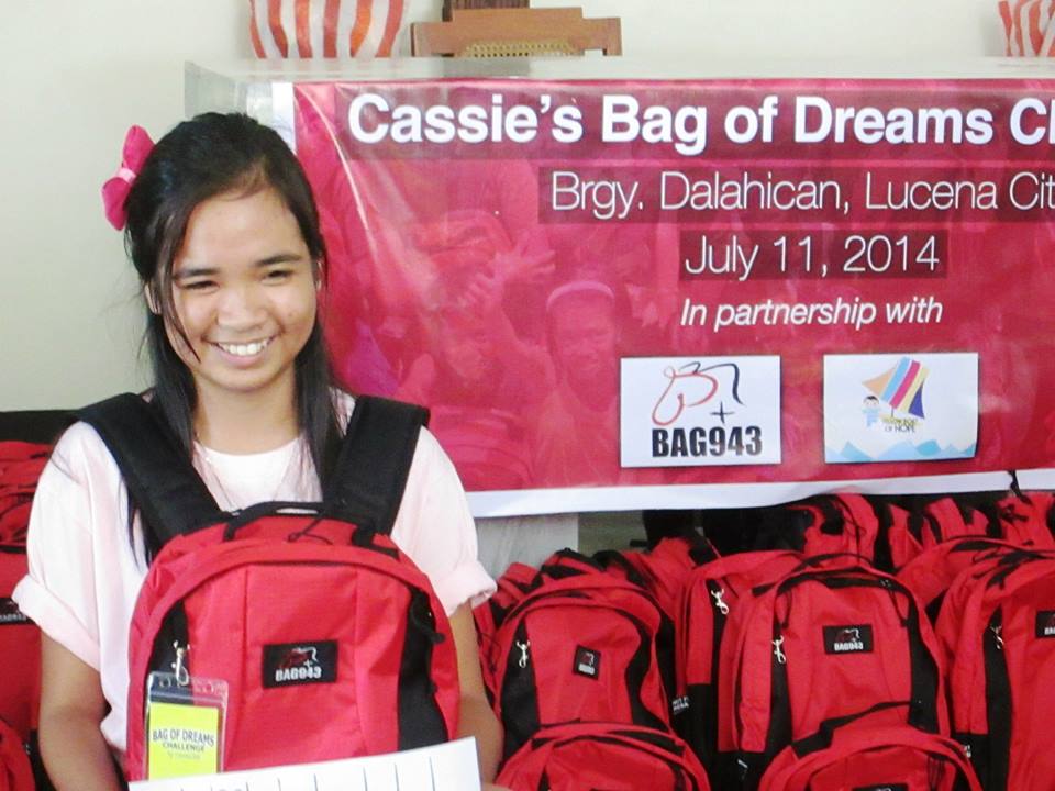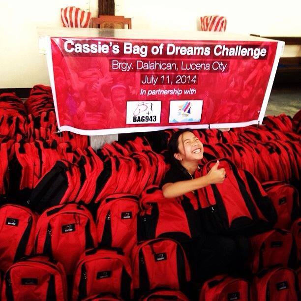 Cassie’s first ever Bag of Dreams Challenge with 300 Tagalog and Badjao children from Lucena City in partnership with John K. Chua (Adphoto), Harvery Chua, Yellow Boat of Hope Foundation and Bag943 (Be A Giver).