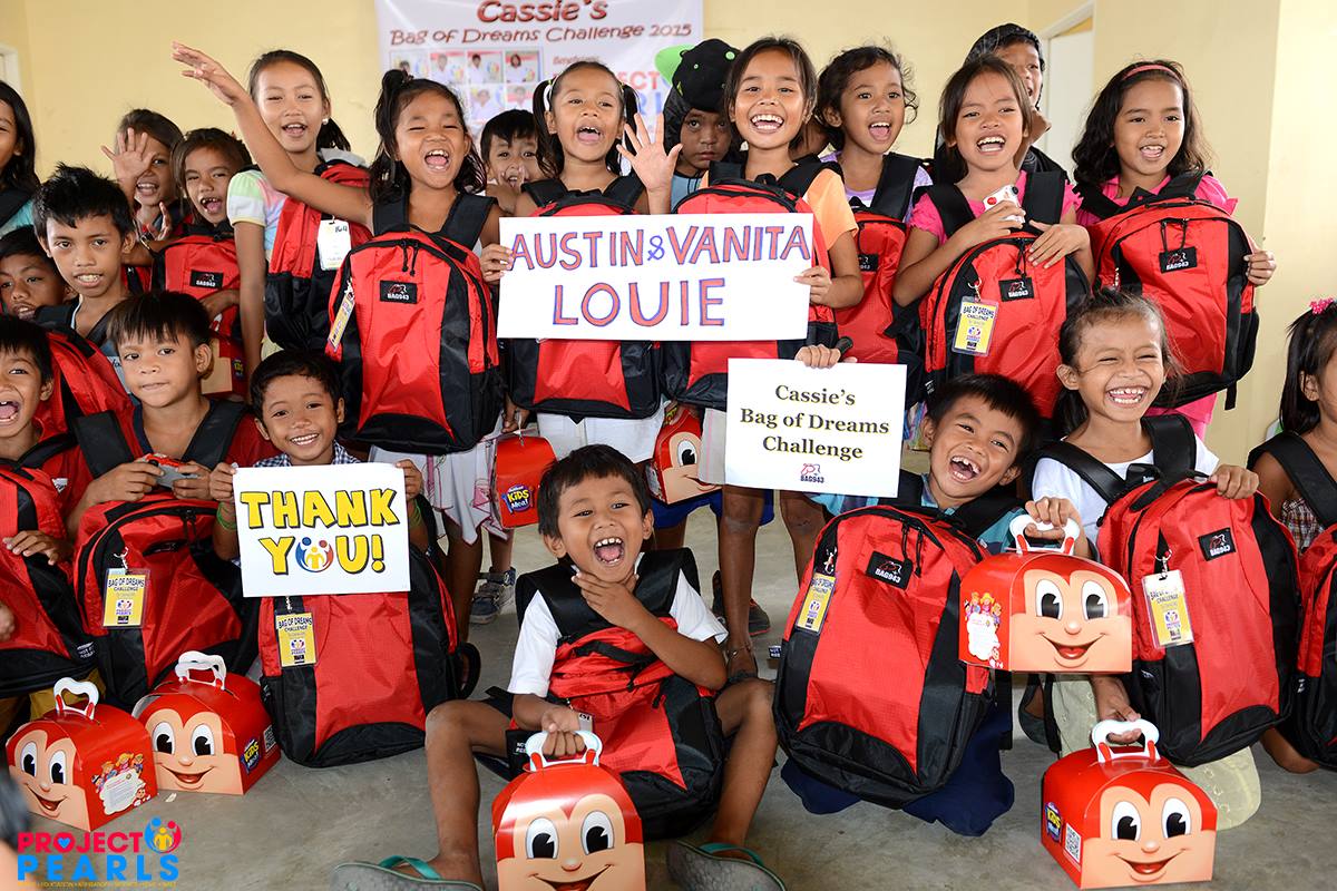 We deeply thank Cassie, her family and friends, Josh Mahinay and #Bag943, Doc Anton Mari H. Lim of Yellow Boat of Hope and Jollibee Foundation for making 2015’s challenge not only possible but for making it very special and memorable! Over 300 of our PEARLS scholars received Bag943 backpacks filled with school supplies. All our scholars and volunteers had chickenjoy meals from Jollibee; cupcakes from Cassie’s family!